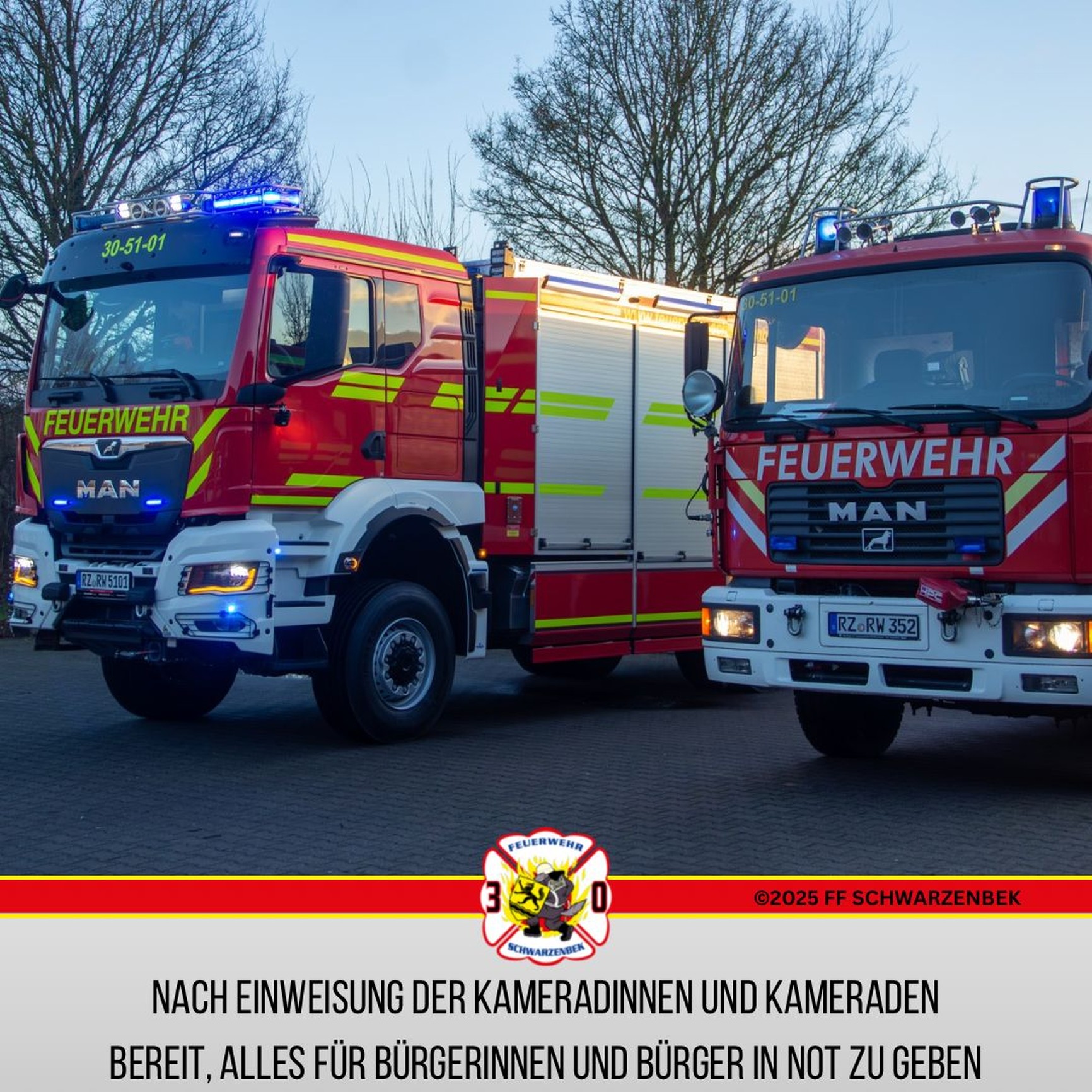 Nach 24 Jahren treuem Dienst wurde unser bisheriger Rüstwagen abgelöst. In der vergangenen Woche durften wir voller Freude unseren neuen Rüstwagen in Empfang nehmen! Dieser wurde von der Firma Ziegler auf einem MAN TGS aufgebaut und bringt einige spannende Neuerungen mit sich. Ein besonderes Highlight des Fahrzeugs ist das neue Rollcontainer-System. Im Heck des Rüstwagens können drei Rollcontainer untergebracht werden, die speziell für unterschiedliche Einsatzszenarien konzipiert sind. Dadurch sind wir an der Einsatzstelle flexibel ausgerüstet – sei es mit Strom- und Lichtsystemen, hydraulischen Rettungsgeräten oder Abstützsystemen. Ein weiteres besonderes Merkmal ist die Haspel am Heck, was für einen Rüstwagen eher unüblich ist. Hier finden 10 Verkehrsleitkegel, gelbe Blitzleuchten zur Absicherung und mehrere Warnschilder Platz. So können wir auch die Verkehrssicherung an Einsatzstellen noch effizienter umsetzen. Der neue Rüstwagen ist mit modernster LED-Technik ausgestattet. Rund um das Fahrzeug sorgen LED-Leuchten für optimale Sicht, der zwischen Kabine und Aufbau verbaute Lichtmast ermöglicht es uns, Einsatzstellen weiträumig und flexibel auszuleuchten. Seit einigen Tagen werden unsere Kameradinnen und Kameraden intensiv auf das neue Fahrzeug eingewiesen. Sobald die Schulung abgeschlossen ist, wird der Rüstwagen offiziell in den Einsatzdienst gehen und für die Sicherheit aller Schwarzenbekerinnen und Schwarzenbeker zur Verfügung stehen. Unser alter Rüstwagen hat uns über viele Jahre hinweg treue Dienste geleistet. Mit einem lachenden und einem weinenden Auge verabschieden wir uns von ihm. Wir sind dankbar für die vergangene Zeit, blicken aber gleichzeitig mit Freude und Zuversicht in die Zukunft – gemeinsam mit unserem neuen Fahrzeug! |