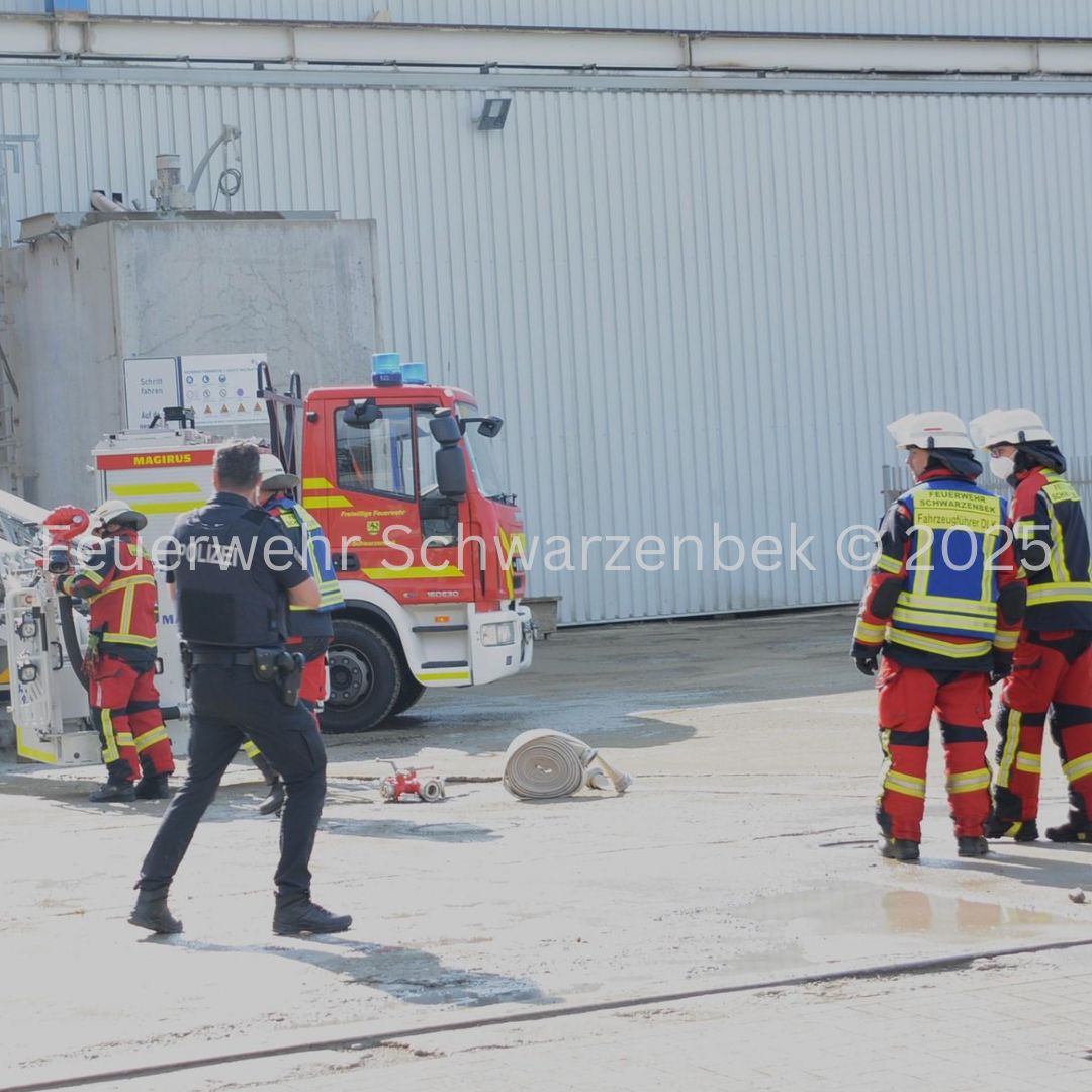 In Abstimmung mit dem Ordnungsamt wurde entschieden, mittels Drehleiter die Dächer der angrenzenden Hallen zu benetzen. Ziel war es, das feine Zementpulver, das bei Inhalation Reizungen der Atemwege verursachen kann, zu binden und eine weitere Ausbreitung zu verhindern. Zusätzlich wurde durch die Feuerwehr Lauenburg ein spezielles Fließ zur Verfügung gestellt, das das Eindringen des Materials in die Kanalisation unterbindet.