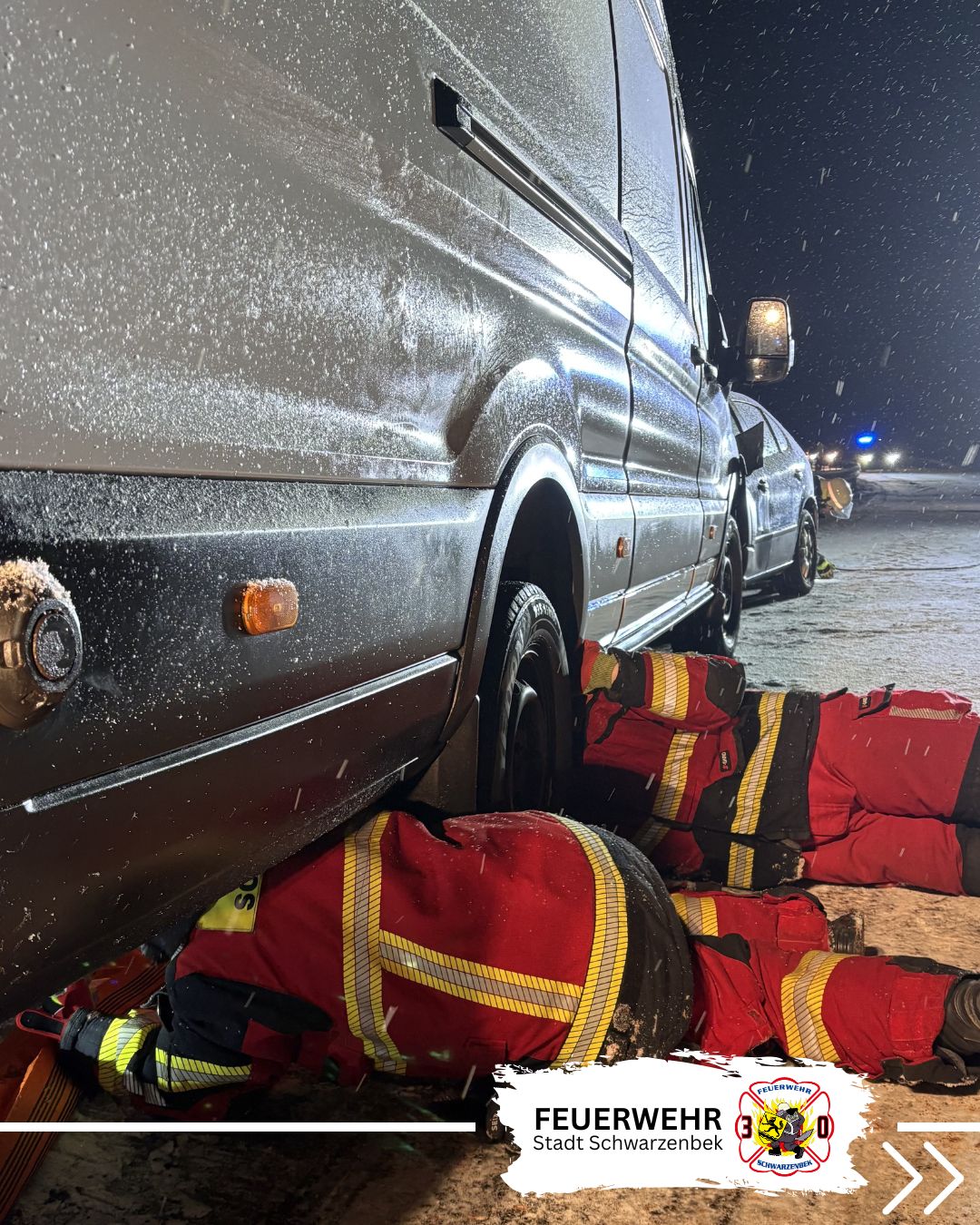 Aufgrund von anhaltender Glätte und Schneefall in der Nacht gestaltete sich die Anfahrt zur Einsatzstelle erschwert. Die Einsatzkräfte passten ihre Fahrweise den Straßenverhältnissen an.
