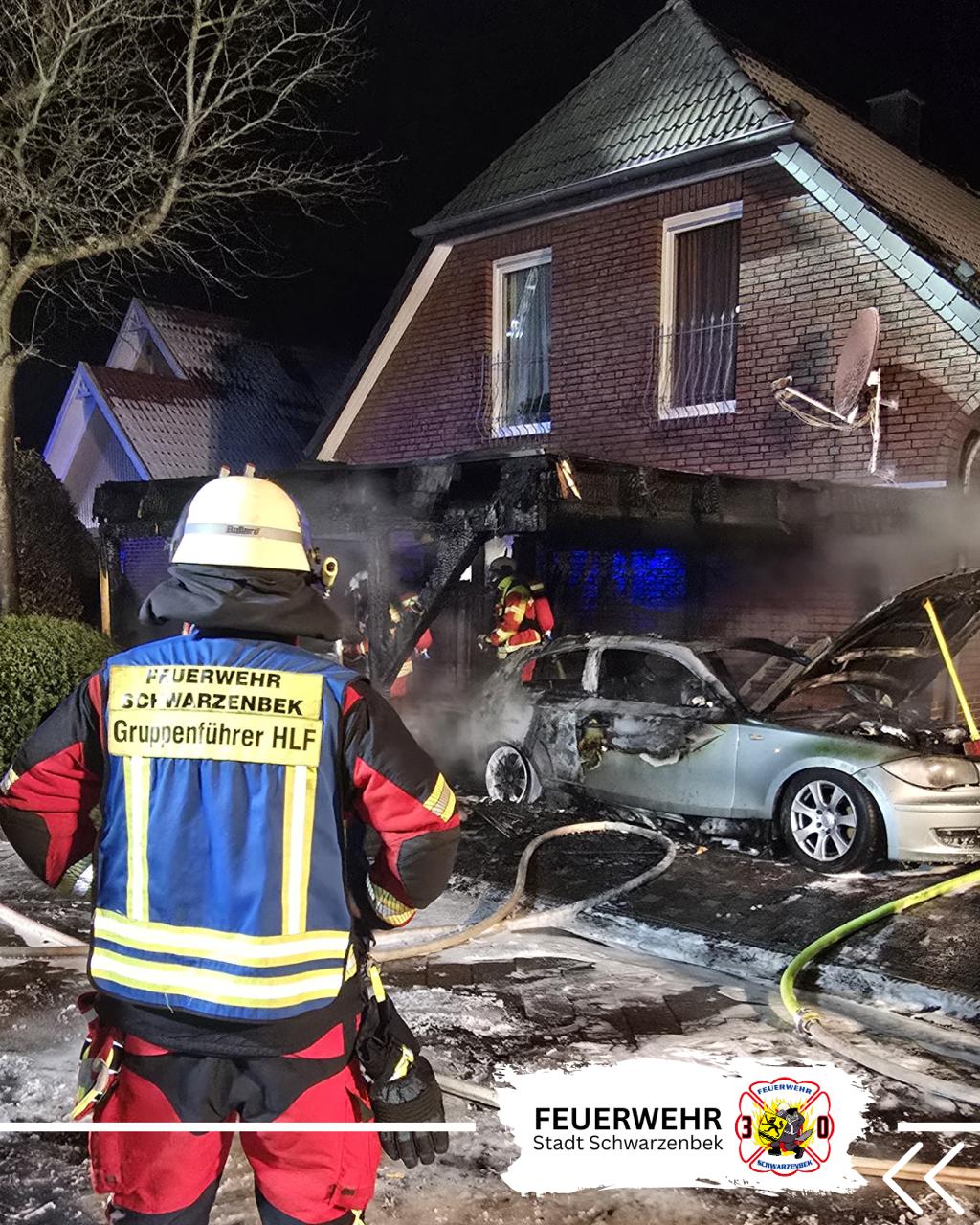 Am 20.02.2026 gegen 18:00 Uhr wurden wir zu einem PKW-Brand alarmiert. Bereits auf der Anfahrt wurde ein Carport in Vollbrand sowie eine drohende Ausbreitung auf den Dachstuhl eines Wohngebäudes gemeldet, woraufhin das Alarmstichwort erhöht wurde.