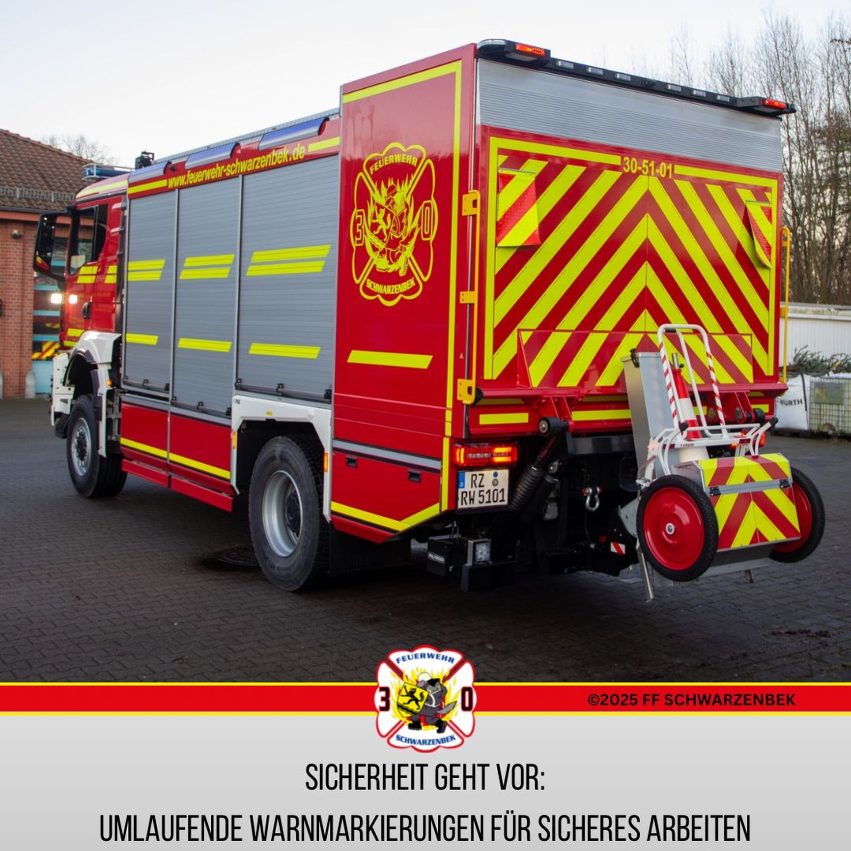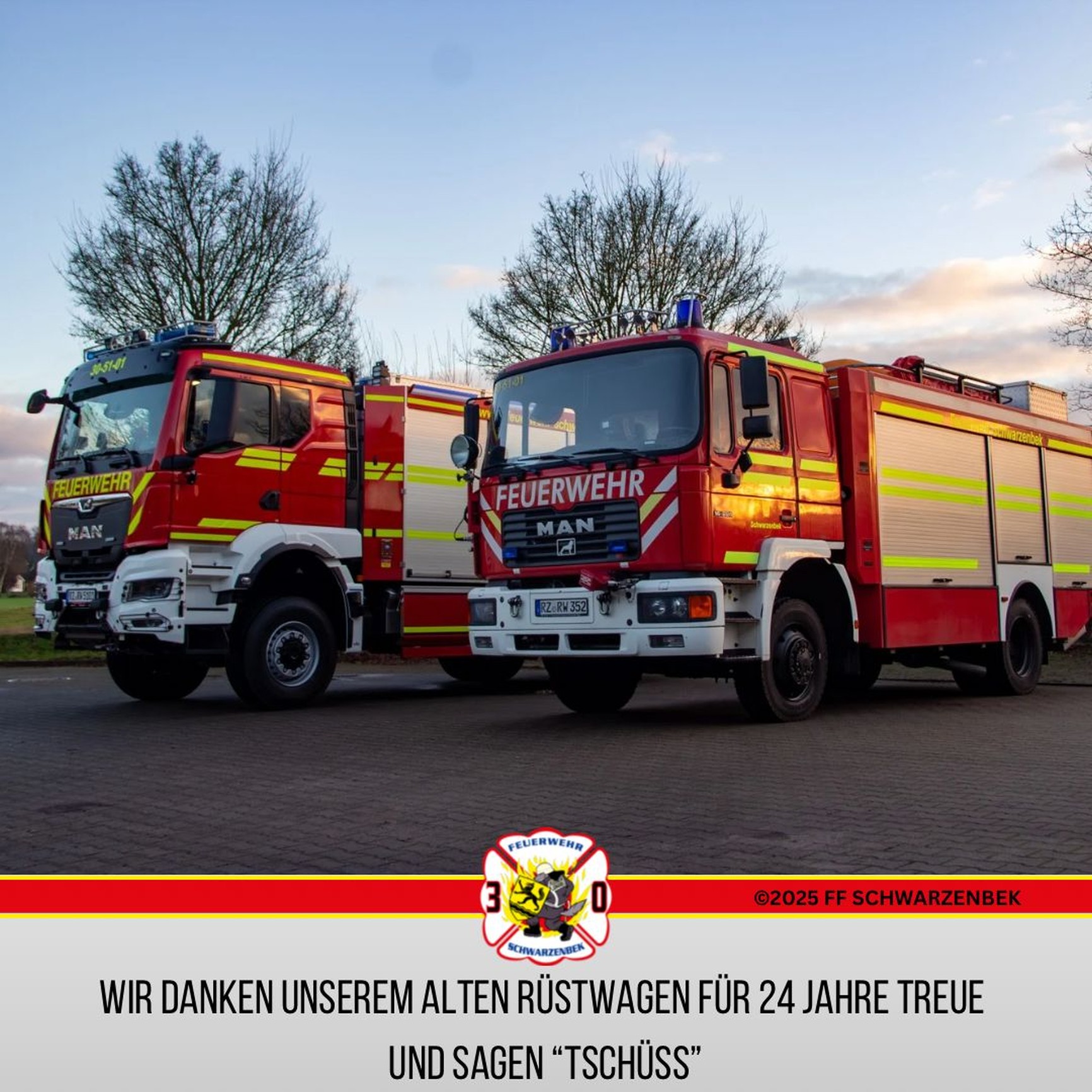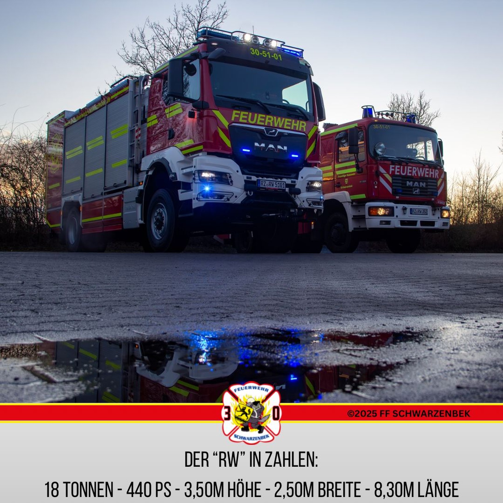 Nach 24 Jahren treuem Dienst wurde unser bisheriger Rüstwagen abgelöst. In der vergangenen Woche durften wir voller Freude unseren neuen Rüstwagen in Empfang nehmen! Dieser wurde von der Firma Ziegler auf einem MAN TGS aufgebaut und bringt einige spannende Neuerungen mit sich. Ein besonderes Highlight des Fahrzeugs ist das neue Rollcontainer-System. Im Heck des Rüstwagens können drei Rollcontainer untergebracht werden, die speziell für unterschiedliche Einsatzszenarien konzipiert sind. Dadurch sind wir an der Einsatzstelle flexibel ausgerüstet – sei es mit Strom- und Lichtsystemen, hydraulischen Rettungsgeräten oder Abstützsystemen. Ein weiteres besonderes Merkmal ist die Haspel am Heck, was für einen Rüstwagen eher unüblich ist. Hier finden 10 Verkehrsleitkegel, gelbe Blitzleuchten zur Absicherung und mehrere Warnschilder Platz. So können wir auch die Verkehrssicherung an Einsatzstellen noch effizienter umsetzen. Der neue Rüstwagen ist mit modernster LED-Technik ausgestattet. Rund um das Fahrzeug sorgen LED-Leuchten für optimale Sicht, der zwischen Kabine und Aufbau verbaute Lichtmast ermöglicht es uns, Einsatzstellen weiträumig und flexibel auszuleuchten. Seit einigen Tagen werden unsere Kameradinnen und Kameraden intensiv auf das neue Fahrzeug eingewiesen. Sobald die Schulung abgeschlossen ist, wird der Rüstwagen offiziell in den Einsatzdienst gehen und für die Sicherheit aller Schwarzenbekerinnen und Schwarzenbeker zur Verfügung stehen. Unser alter Rüstwagen hat uns über viele Jahre hinweg treue Dienste geleistet. Mit einem lachenden und einem weinenden Auge verabschieden wir uns von ihm. Wir sind dankbar für die vergangene Zeit, blicken aber gleichzeitig mit Freude und Zuversicht in die Zukunft – gemeinsam mit unserem neuen Fahrzeug! |