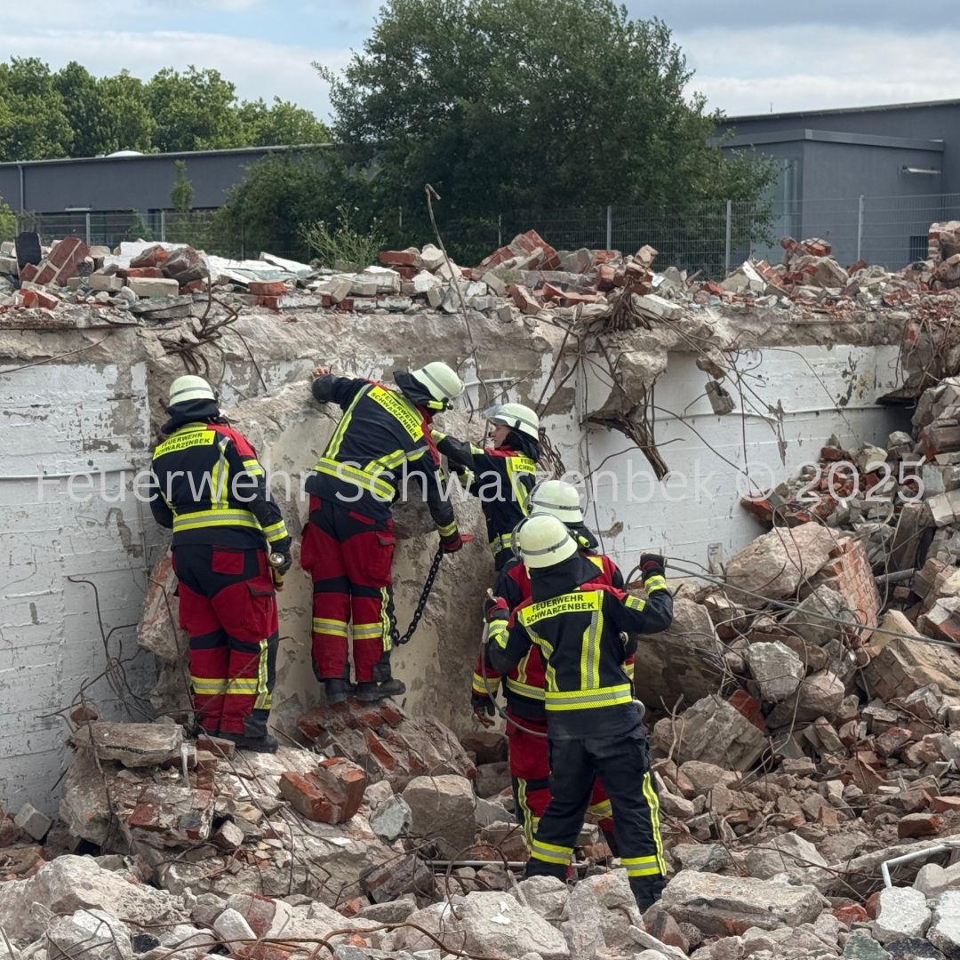 Ausbildungsdienst am 26.07. zusammen mit dem THW und Feuerwehren des Amtes Schwarzenbek-Land Am 26.07. haben wir die Möglichkeit bekommen, zusammen mit dem THW und Wehren des Amtes auf einem Abbruchgelände zu üben. Es galt, fünf Stationen abzuarbeiten. Bei der ersten Station mussten wir einen Zugang zu einer Person verschaffen, welche hinter einer Glastrennwand verletzt war. Das THW, Fachgruppe Ortung, stellte uns vor, welche Mittel sie haben, um verschüttete Personen aufzuspüren. Mittels Sonden können Klopf- und Kratzgeräusche aufgenommen werden und so der Standort einer verschütteten Person ausfindig gemacht werden. Das DRK OV Schwarzenbek übernahm an dem Tag die Versorgung. Sie stellten uns Getränke sowie ein Mittagessen. Danke an das DRK dafür. Nach dem Mittag ging es an die letzten Stationen. Es galt weiter das Retten von verschütteten Personen zu üben. Bevor die Rettung stattgefunden hatte, mussten wir die Bereiche absuchen, um die Personen retten zu können. Wir bedanken uns an das ORGA-Team sowie an alle Kameradinnen und Kameraden der Feuerwehr, dem THW sowie dem DRK. Auch bedanken wir uns bei der Firma HR-Abrüche, die uns das Gelände zur Verfügung gestellt hat. |