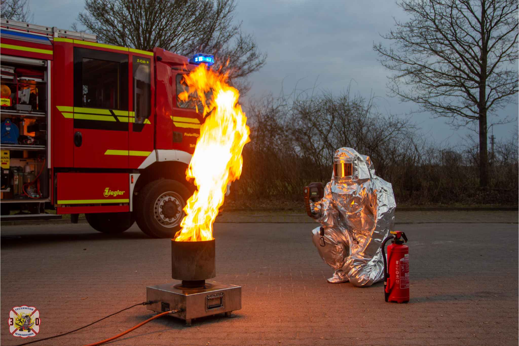 Ein Hitzeschutzanzug dient dem Schutz vor intensiver Strahlungshitze sowie kurzzeitiger Flammenberührung. Er darf ausschließlich in Kombination mit einem Atemschutzgerät getragen werden. Die Feuerwehr Schwarzenbek verfügt über vier Hitzeschutzanzüge: zwei der Form III und zwei der Form II.
