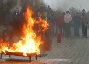 In der Brandwanne können kleine Übungsfeuer (Feststoff und Flüssigkeit) entzündet werden, um z.B. den umgang mit Feuerlöschern zu üben. |