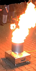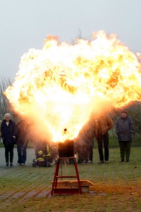 Mit der Fettexplosion kann gezeigt werden, was passiert wenn man einen Fettbrand mit Wasser löscht aber auch das korekte vorgehen kann geübt werden. |
