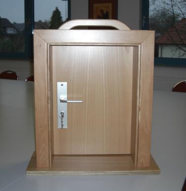 An der Übungstür kann das öffnen von Türen mit dem Zieh Fix und anderen Werkzeugen geübt werden. |