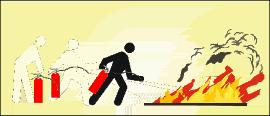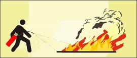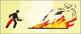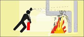Bei größeren Entstehungsbränden mehrere Feuerlöscher gleichzeitig und nicht nacheinander einsetzen. | |